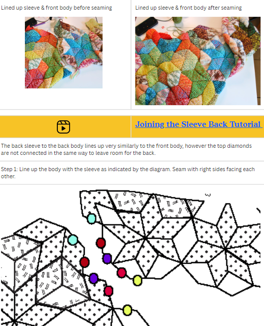 Construction The hoodie is assembled from individual crocheted diamonds, which are slip-stitch joined into 'quilt block' shapes. These blocks are then assembled into dolman sleeves with ribbed cuffs. The body is similarly assembled and finished with a comfortable waistband, and the last a hood is added. For a preview of the final assembly, check out our video tutorial.